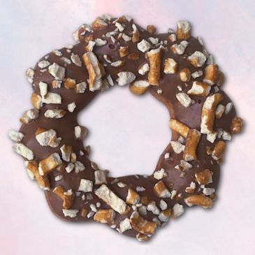 Dipped in milk chocolate and topped with crunchy pretzel pieces for a perfectly balanced sweet-and-salty bite.